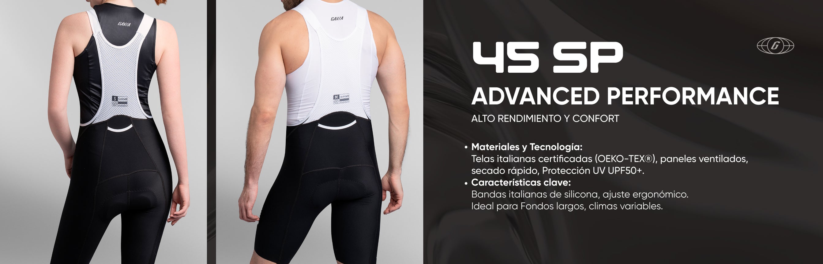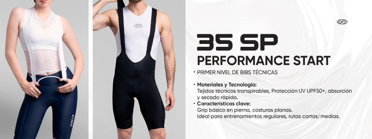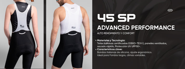 Nuestros BIBs están confeccionados con los mejores materiales para garantizar un ajuste perfecto, transpirabilidad y libertad de movimiento.